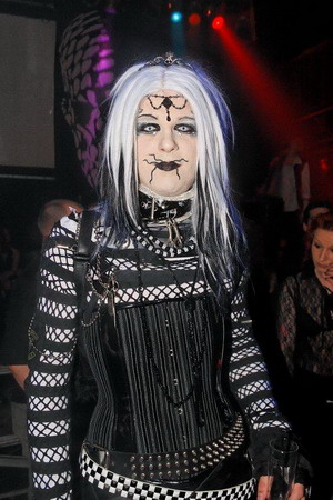 Beschreibung: ein Herrenmodell (Willy-Willy) in Nadelstreifen mit Samt sowie 2 eingefügte Streifen in schwarzem Lack