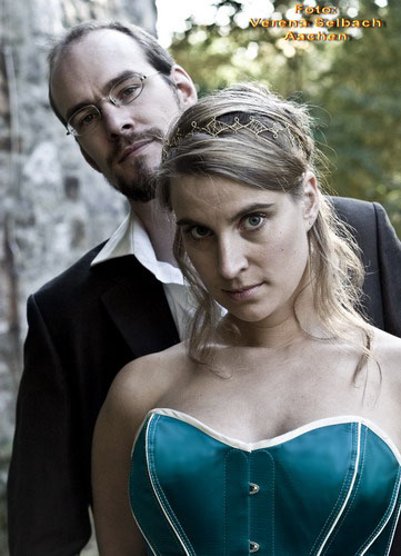 Beschreibung: ein Überbrustmodell (Hurrikan) in Satin türkisblau mit crèmefarbenen Paspeln + Einfassung