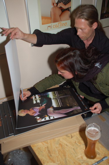 zur Event-Übersicht Es wurde in der smarten Bar waschbütt noch am Vormittag fleißig gewerkelt, denn schließlich sollte die erste Vernissage in diesen Räumlichkeiten gelingen. Als um 20h die Fotomodelle (Bara, Michiko, Steffi, Tatie, Tanja und Patricia -einherzliches Dankeschön an Euch!) in ihren "Kalender-Korsetts" die waschbütt betraten war alles perfekt: die Bilder hingen, das Faß war angezapft und es wurde schon viel gelacht! Kunden, neue Korsettinteressierte und auch neugierige Stammgäste der waschbütt genossen den Abend bei ein, zwei oder mehr Gläsern Uerige vom Faß oder was das Herz sonst so begehrte: Frank und André von der waschbütt waren ein super Team! Selbst eine Anreise aus Siegburg oder Haltern-Lavesum war nicht zu weit. Es wurde viel nachgeschnürt, Knotentechniken ausgetauscht und selbst Frank von der waschbütt wollte seine Wette einlösen und hat sich ein Korsett anziehen lassen ;-) Nicht nur die Signierung der Kalender durch die Models war an diesem Abend angesagt, sondern auch das Signieren der Dekolletés der Modelle vom Fotografen Christian Ritter! ...hier nun ein paar Bilder (nach erfolgter Zensur ;-) sowie Presseberichte aus dem Viertel unter www.einkaufen-duesseldorf-flingern.de :