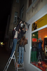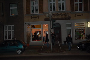 zur Event-Übersicht 2,5 Jahre gibt es nun das "mi camino" und kein Neon-Werbeschild o.ä. prankte an der Häuserfront der Dorotheenstr., die gottseidank noch einige Häuser vom Anfang des 20. Jahrhundert vorzuweisen hat. Dies war auch so ziemlich der Anfang unseres Auslegers: wir wollten kein übliches Leuchtreklameschild sondern etwas, das zu "mi camino" und zu dem Stil des Hauses paßt. Ein dickes Dankeschön an dieser Stelle an den Eisenkünstler Ingo Lüder (www.eiserne-kunst.de), der einen Korsettschnitt aus dieser Zeit super in ein Eisenkorsettschnitt umgewandelt und für uns realisiert hat (auch ein dickes Dankeschön an seine Maja von FrouFrou Design, die immer noch auf Ihren Ausleger warten muß!). Nachfolgend ein paar pics, wie die Dame des Hauses selbst Hand anlegt und die Herren der Schöpfung (auch hier ein dickes DANKE an Sascha und seine Katrin, die uns beim Anbringen super geholfen haben!) gespannt und skeptisch auf die Resultate wartet und schaut ;-) Zum guten Schluß wurde auch mit einem Schluck obligatorischen Glühwein angestoßen! Einen Bericht hierüber findet Ihr auch unter: www.einkaufen-duesseldorf-flingern.de :